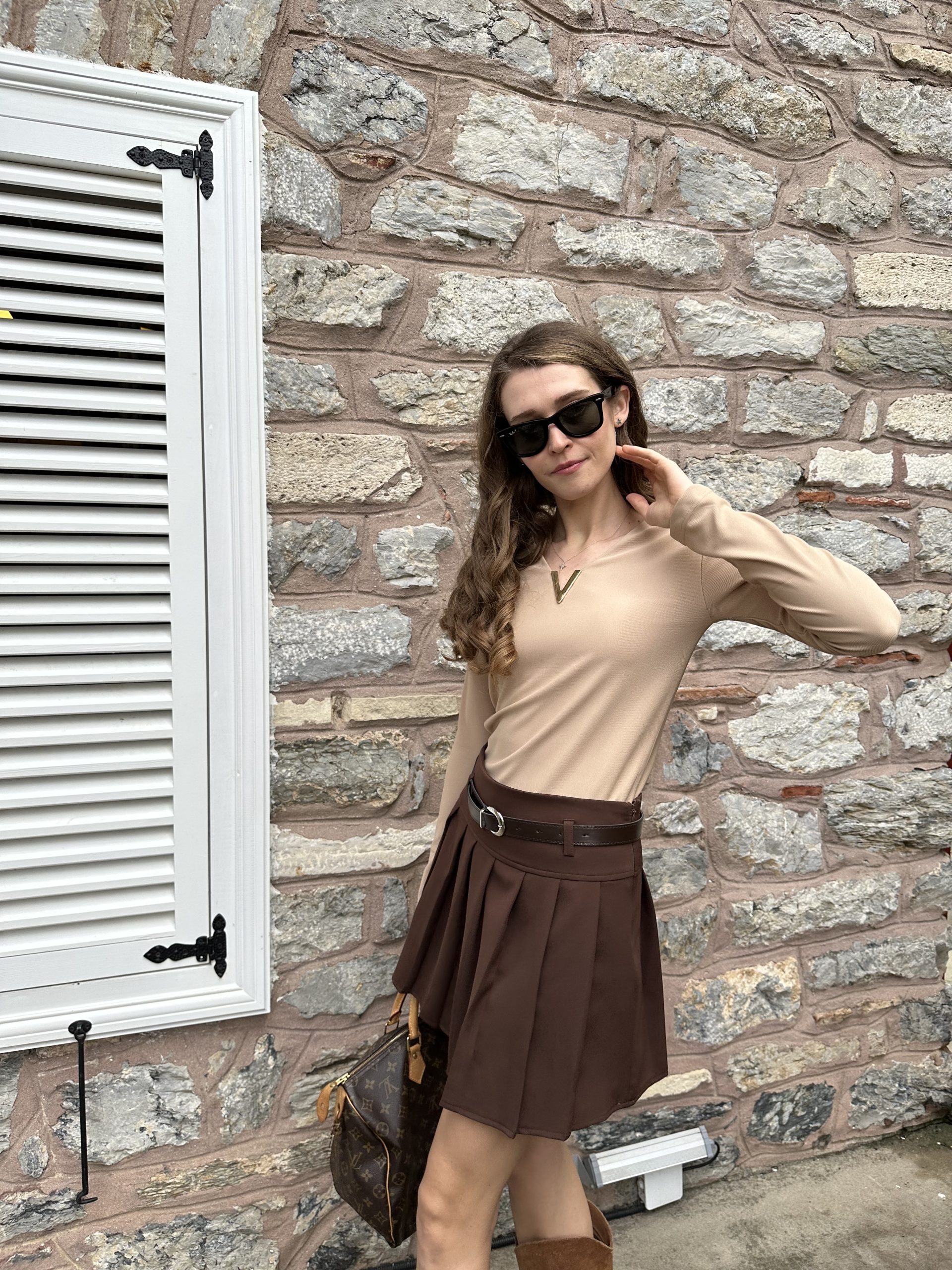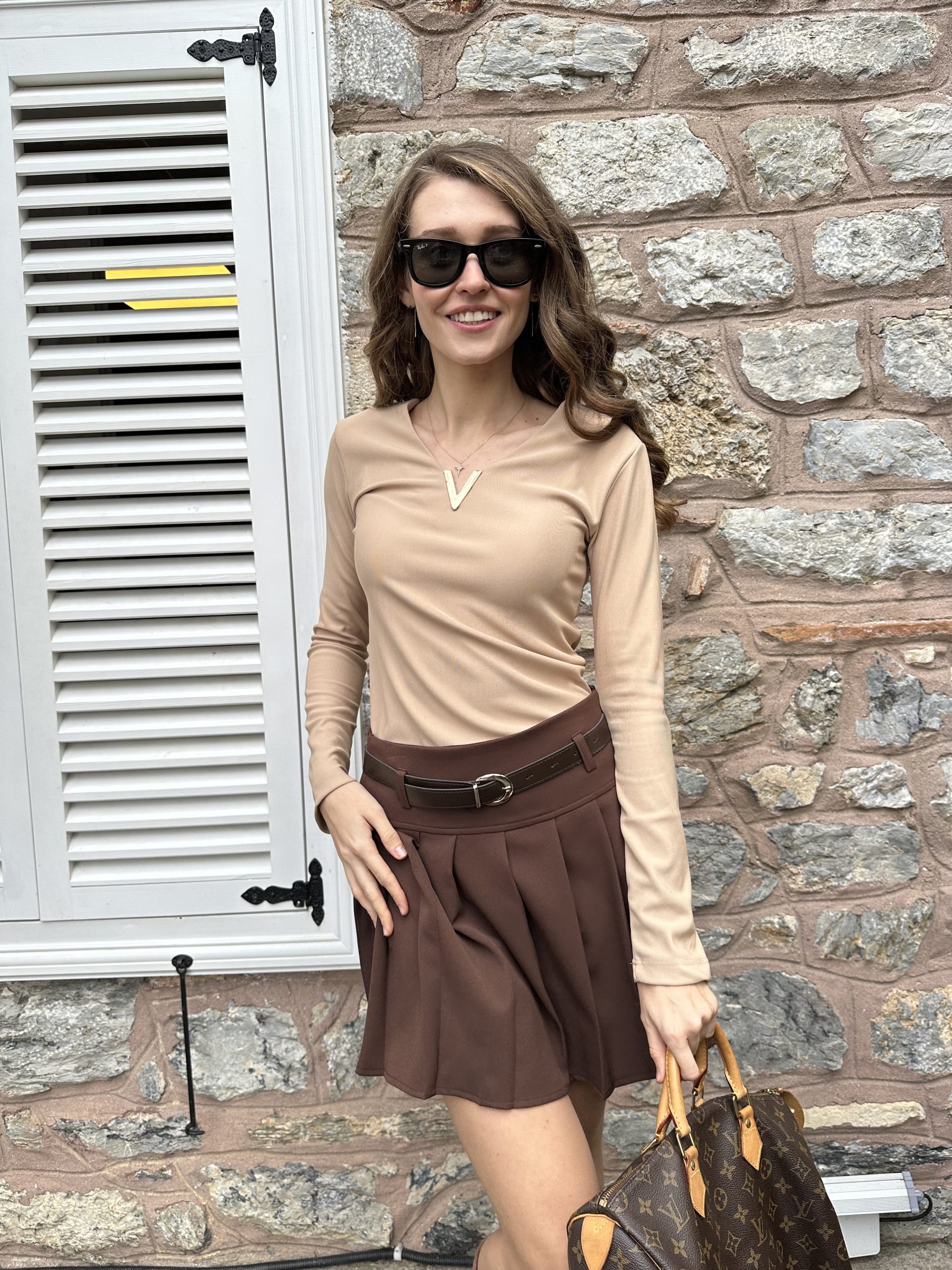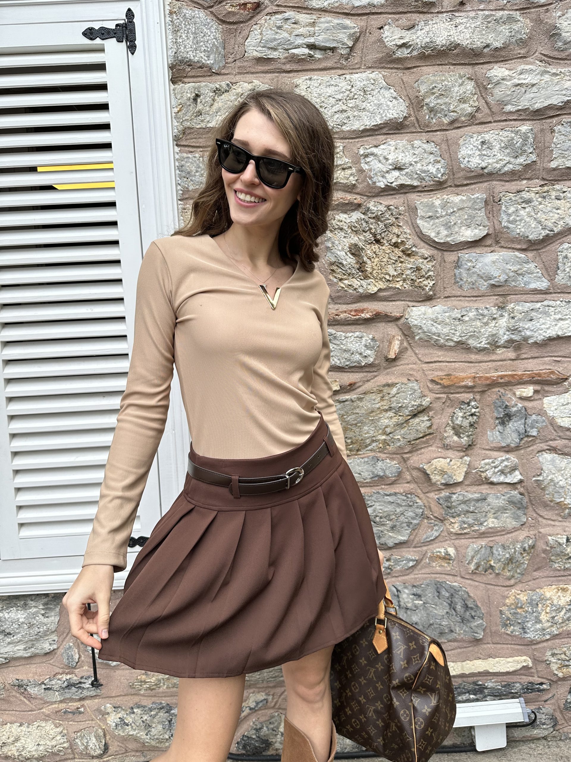 Kahverengi Pileli Kemerli etek adet