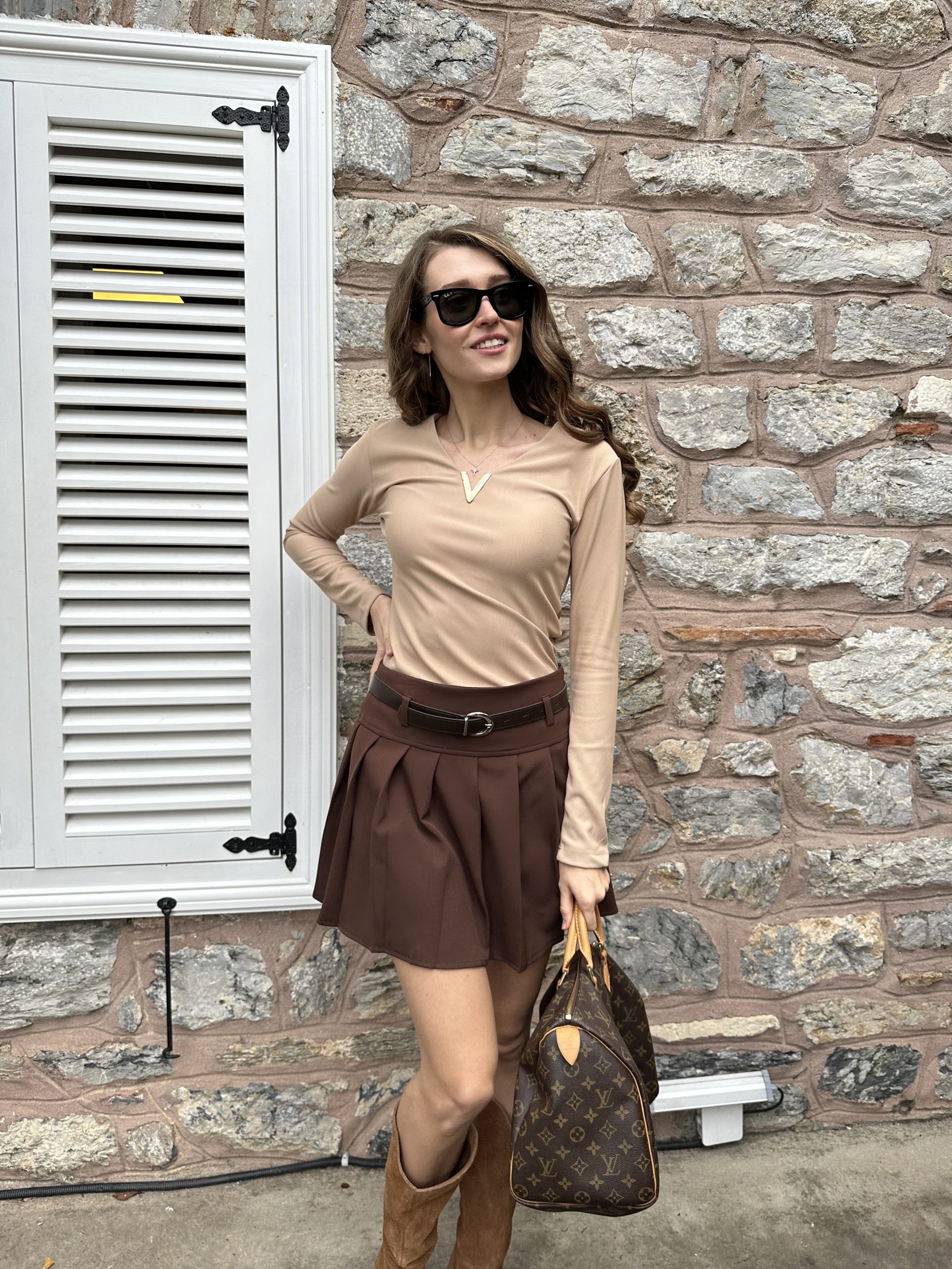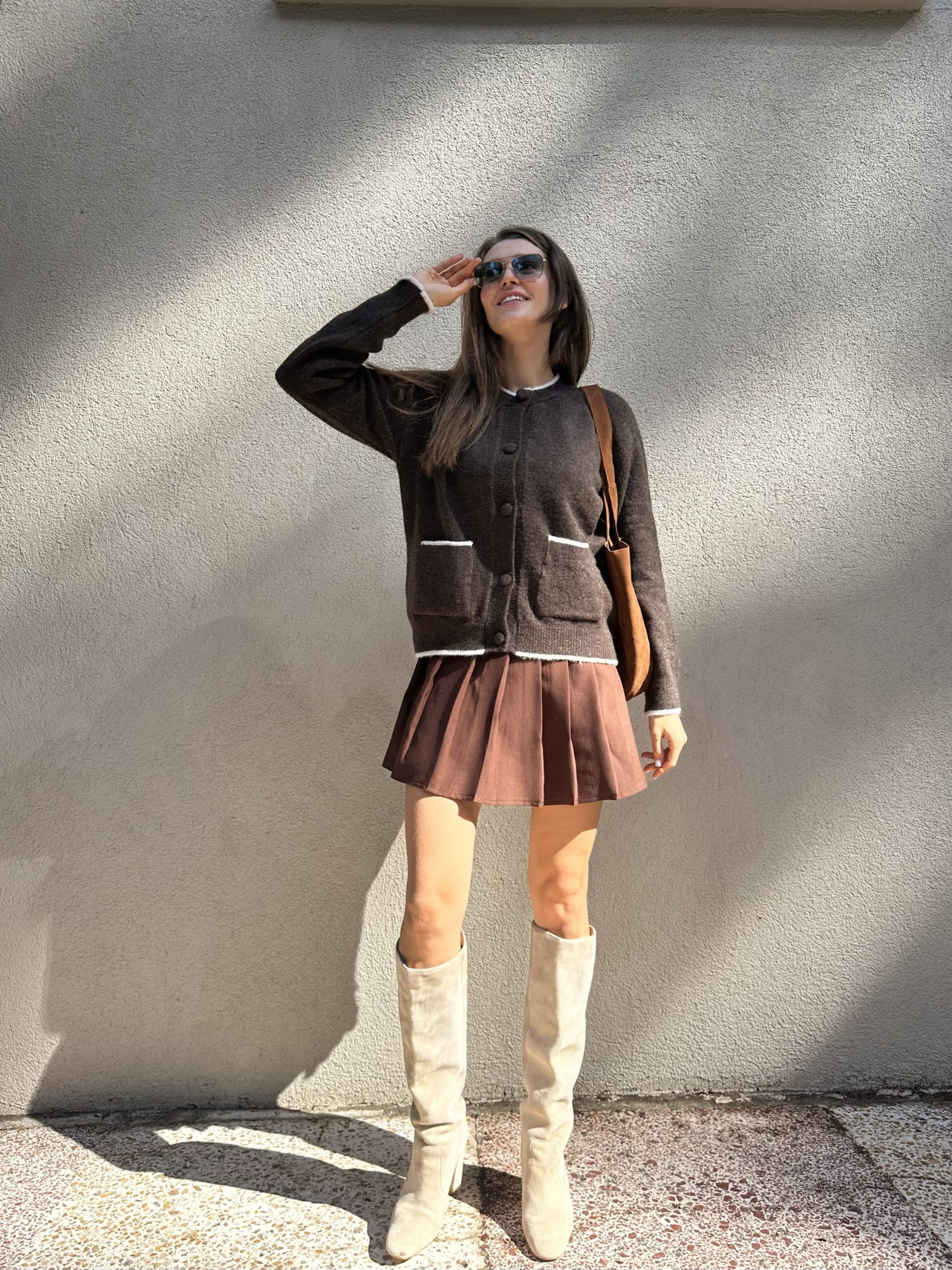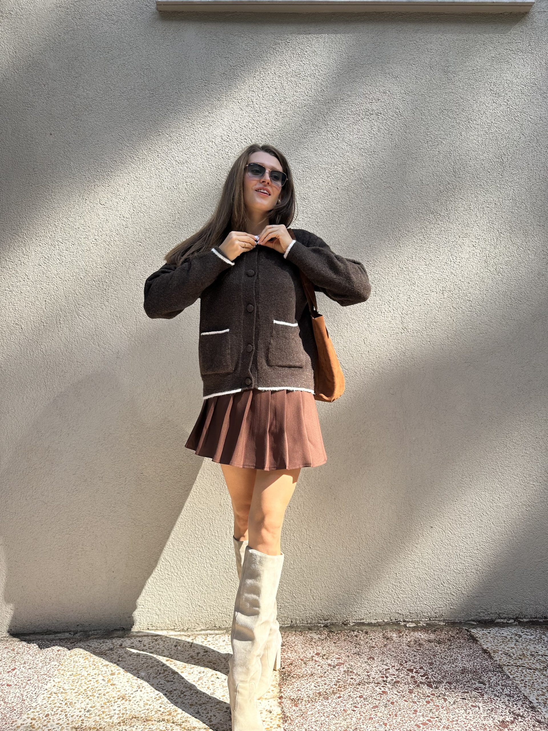 Kahverengi Pileli Kemerli etek adet